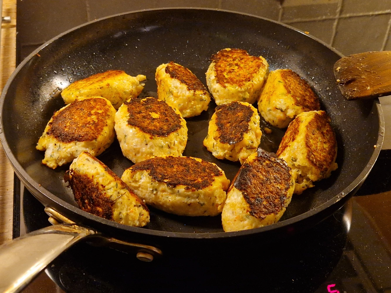 Fars friske fiskefrikadeller med fars af guldlaks fra Færøerne. Frikadellerne har en god konsistens, er ikke for fede og har en dejlig krydret smag.